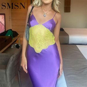 Fashionable sexy spice girl spell color halter belt dress hook flower hollow V collar back waist long Casual Dress